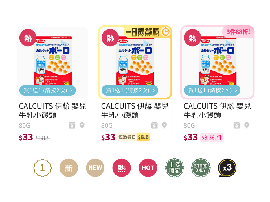 Layered design elements like “Hot,” “New,” and “Ztore Only” prioritize key product details at a glance, enabling users to absorb critical information quickly without overwhelming the interface.